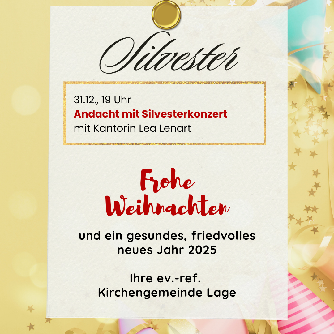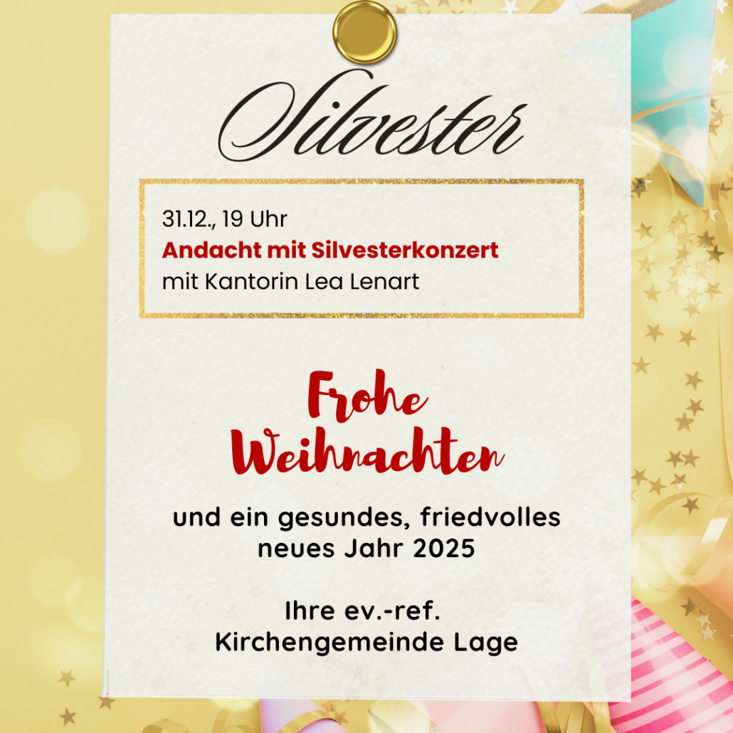 Altjahresabend – Mittwoch, 31.12.2025, 19 Uhr, Marktkirche: Andacht mit Silvesterkonzert (Kantorin Lea Lenart, Pfarrerin Birgit Schneider)