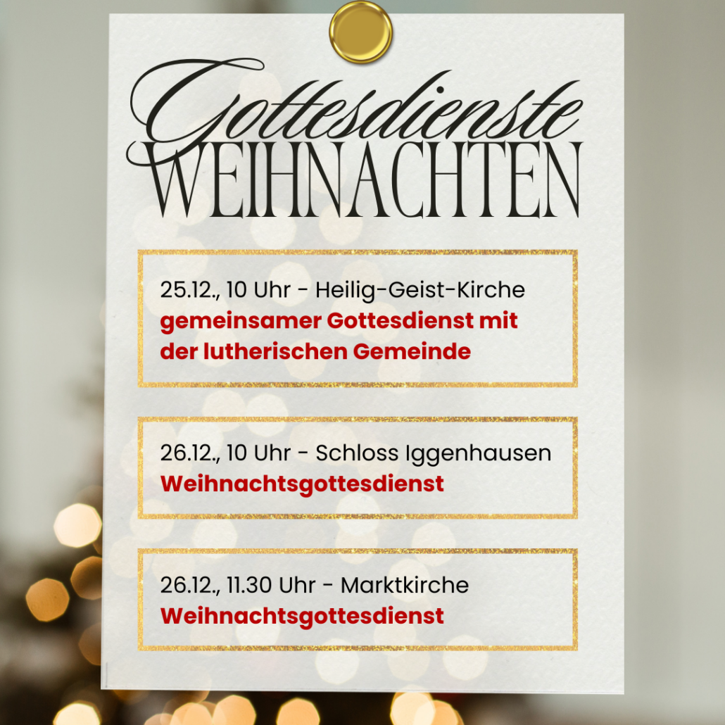 1. Weihnachtsfeiertag – Donnerstag, 25.12.2025, 10 Uhr, Heilig-Geist-Kirche am Sedanplatz: Gemeinsamer Gottesdienst mit der ev.-luth. Kirchengemeinde Lage